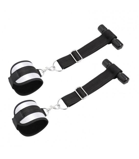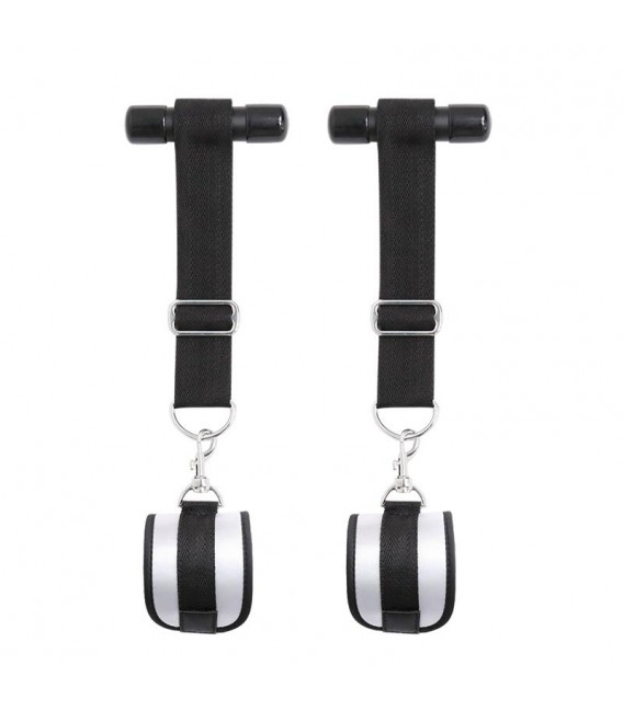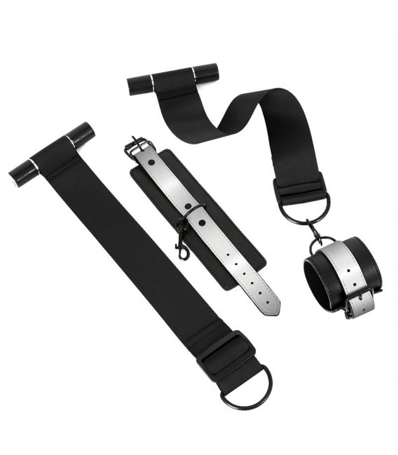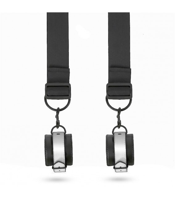 Cuenta con unas correas de neopreno con longitud ajustables, las cuales terminan con unos aros de metal y unas esposas para muñecas. Estas esposas, ajustables con velcro, están unidas con argollas desmontables para que puedas quitarlas y ponerlas a tu antojo.