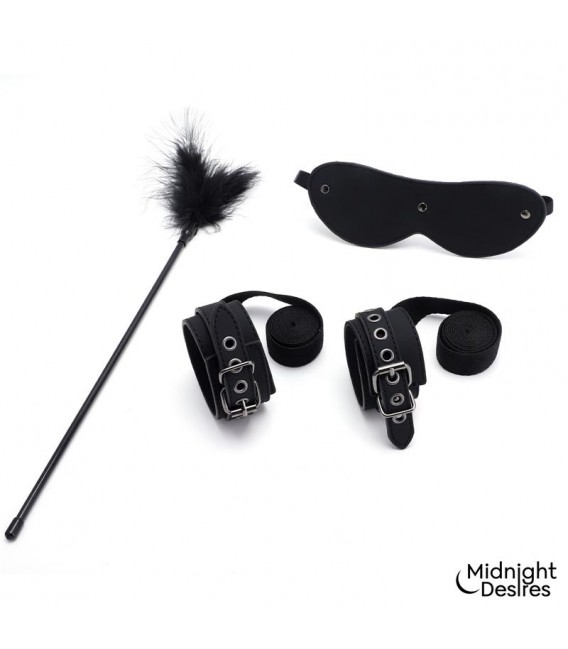 Set Bondage con Esposas, Antifaz y Pluma Estimuladora