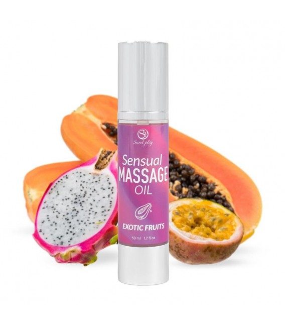 El aceite de masaje de Frutas Exóticas tiene una textura sutil y deslizante la cual permite la estimulación de todos los sentidos a través del masaje.