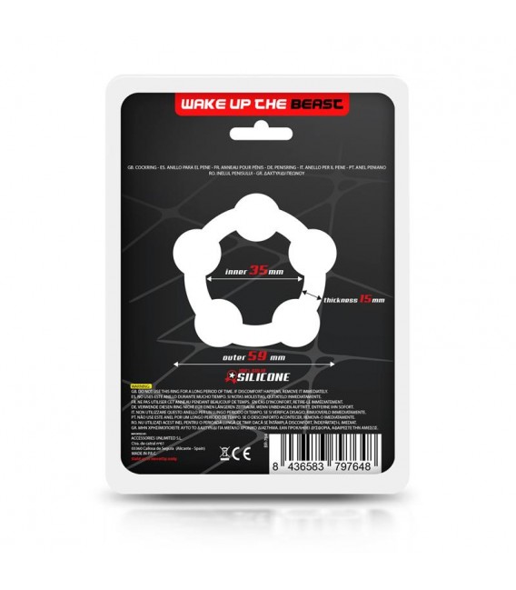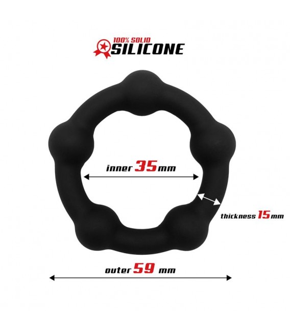 Un anillo para aquellos que buscan un placer diferente. Este anillo cuenta con una forma redondeada pero con 5 bolas a lo largo de su cuerpo, perfecto para disfrutar de una noche extra placentera. Es 100% silicona sólida, la cual es súper útil para que aunque guarde un poco de elasticidad para la comodidad también sea fuerte para unas erecciones extra potentes.