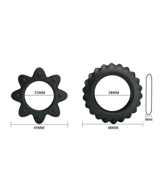Este pack incluye dos diseños de anillo para el pene elásticos, puedes usarlos de uno en uno o combinarlos para un rendimiento máximo. Fabricados en silicona de alta calidad, seguros para la piel, sin látex ni ftalatos. Anillos para el pene de gran calidad, ideales para erecciones potentes y duraderas.