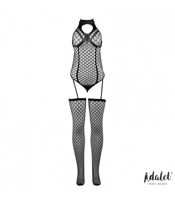 Naomi es un bodystcking de rejilla ancha con ligeros incorporados y cuello halter. Cuenta con detalles muy eróticos, como una espalda abierta o una parte trasera en tanga.