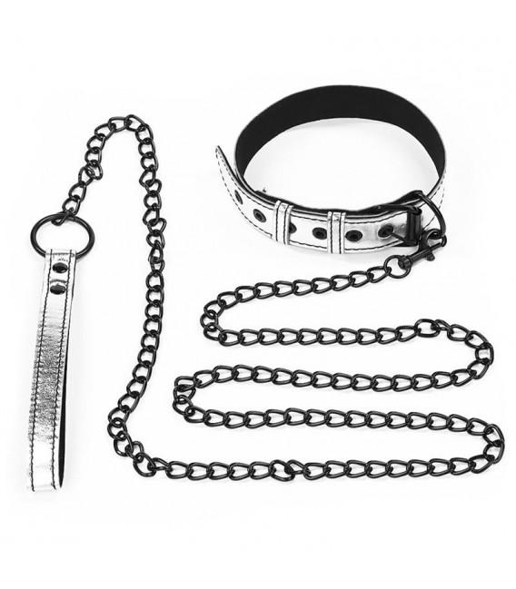 Somete a tu pareja con este collar hecho de cuero sintético junto con la correa metálica. Eleva tu nivel en el bondage con este conjunto y seguro no te arrepentirás. Con un cierre de hebilla de 6 orificios que ajusta el cuello entre 14 y 18,5 pulgadas/35.5 y 46.9 cm, es perfecto para hombres y mujeres. El fuerte anillo en D de metal se puede conectar con cualquier cadena para un juego de sujeción totalmente personalizado. Use el collar solo para una apariencia sexy, o coloque la correa