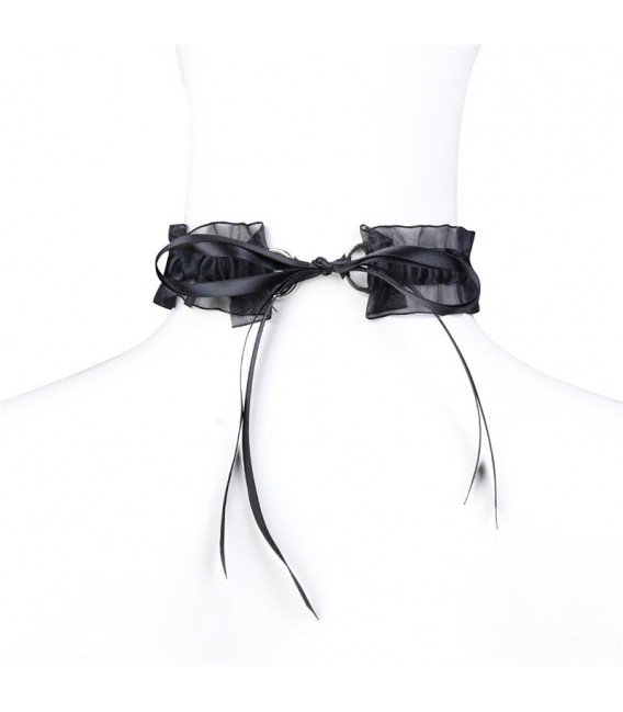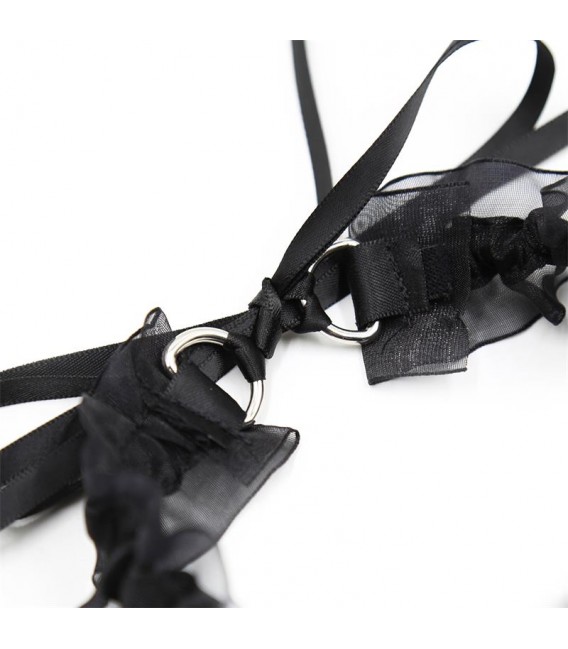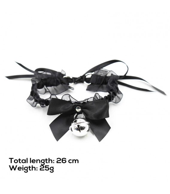 Se tan traviesa como siempre has querido con este collar. Cuenta con un adorable lazo y un cascabel en el centro. Está cubierto en su totalidad de encaje semi transparente que le otorga una apariencia muy sencilla y erótica.