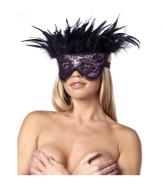 Una sensual máscara de nylon con encaje y unas elegantes plumas.