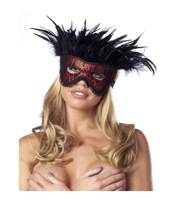Máscara de Lujo con Plumas Rojo