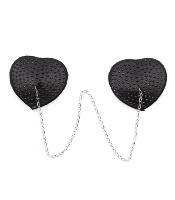 Disfruta el máximo de tu sensualidad con estas pezoneras autoadhesivas con forma de corazón. Cuentan además con una cadena de metal que las une para darle un mejor toque.