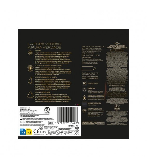 Preservativo ultrafino fabricado con nitrilo moldeable que proporciona una mejor transferencia del calor que el látex. Durex Conexión Total está diseñado para que lo único que sientas sea a tu pareja.