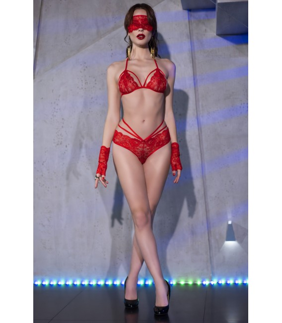 - Set de 4 piezas: sujetador, liguero, tanga y antifaz