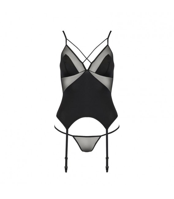 Dentro de la colección de Avanua te presentamos la línea Quella. Con este corset semi transparente en negro podrás disfrutar como nunca de una noche de pasión sintiéndote sensual y sexy. Cuenta con zonas en negro opaco y otras en malla semi transparente, como en el pecho y los laterales.