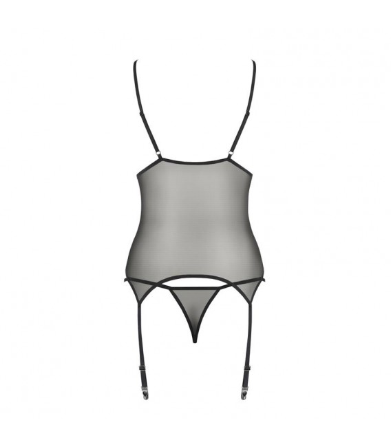 Dentro de la colección de Avanua te presentamos la línea Vendi. Un corset sensual a la par que elegante. Este corset cuenta con dos tipos de patrones. En la parte central una malla semi transparente y suave, mientras que en el pecho y en la parte inferior encaje con un motivo floral. A su vez, unos orificios colocados estratégicamente para enseñar lo justo completa el look.