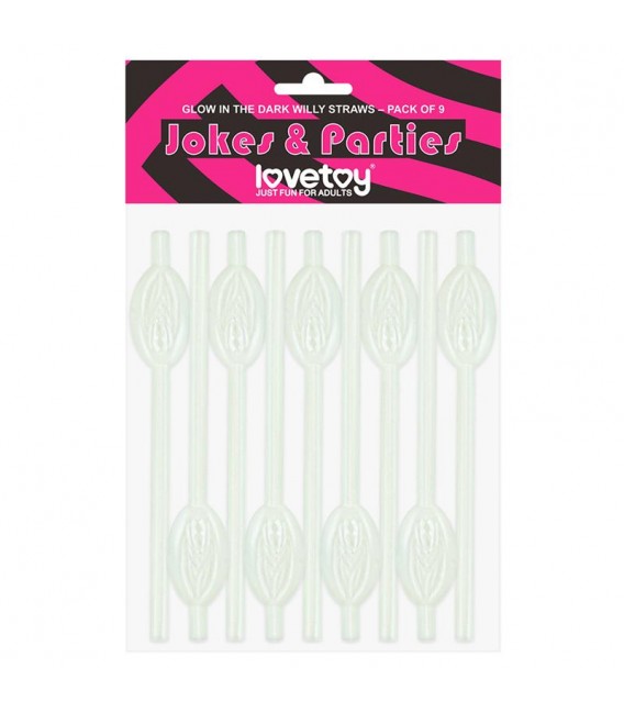 Pajita de Vagina Brilla en la Oscuridad Pack de 9