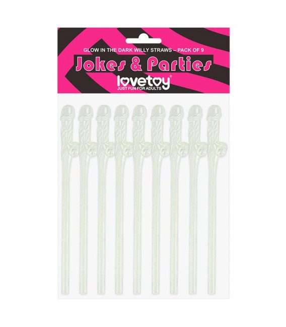 Pajitas de Pene Brillan en la Oscuridad Pack de 9