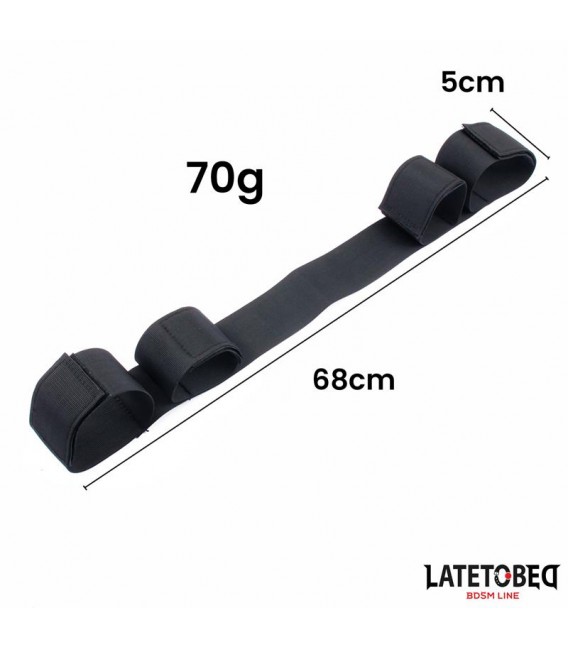 Disfruta de la más alta amplitud con este accesorio separador. Este separador es lo que necesitas para tener a tu sumiso/a en total control. Es perfecta para una noche llena de emociones sin necesidad de perder en comodidad gracias a sus 4 esposas de esponja. Estas esposas se cierran con velcro, ideal para que las puedas adaptar a tus muñecas y tobillos.