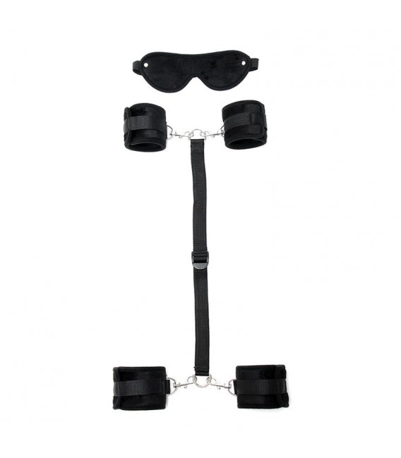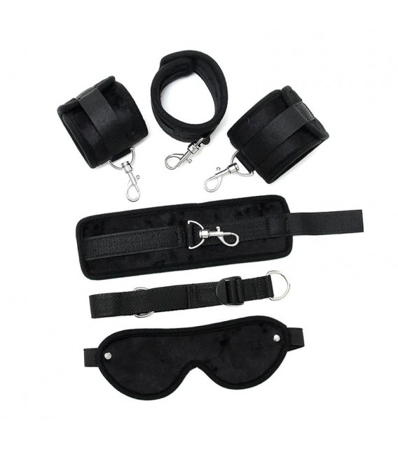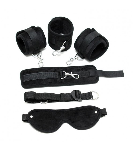 Deja que tu imaginación te lleve más allá de tus límites físicos gracias a estas esposas. Déjate llevar con este conjunto de sujeción de material suave con cierre en velcro. Este set incluye: máscara, esposas, esposas para tobillos, correa y 4 ganchos carabine.