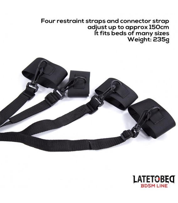 Este set de restricciones para la cama cuenta con correas y esposas para muñeca y tobillo ajustables. Gracias a esto es apta para la mayoría de tamaños de cama. Podrás desmontar las esposas fácilmente gracias a sus argollas.