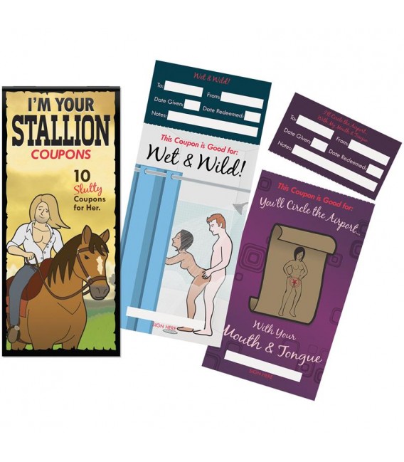10 cupones pensados para ella, incluye cupones para un cunilingus gratis, una postura imposible, un encuentro salvaje, y muchos más.