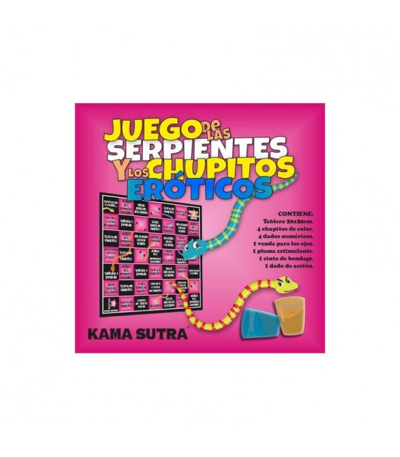 Divertido juego para disfrutar en pareja o con amigos y mucha diversión con la serpiente erótica de chupitos. En este juego en vez de jugar con fichas, se juega con chupitos de colores cada jugador cojera uno y habrá que llenarlo de la bebida que se hable entre los jugadores. En cada casilla tiene un prueba para quien caiga en ella y si alguien se niega a realizarla deberá pagar con una prenda y si caen en una casilla de chupito a beberse el chupito. El jugador ganador será el que llegue al número 49.