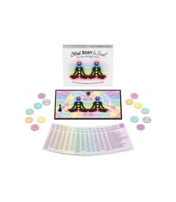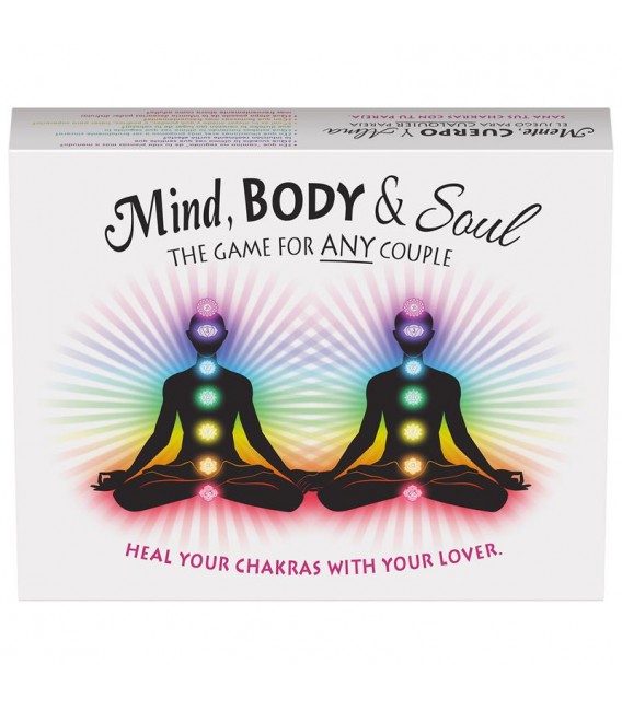 Alcanza el placer extremo con el juego Mind, Body & Soul. Mientras te vas moviendo por el tablero, tú pareja y tú os haréis preguntas diseñadas para abrir los chakras. Hay 20 preguntas por cartas y dos juegos de cartas por los 7 chakras, un total de 240 preguntas de sanación de chakras. Ganarás alineando tus 7 chakras, tu pareja te proporcionará una recompensa intima.