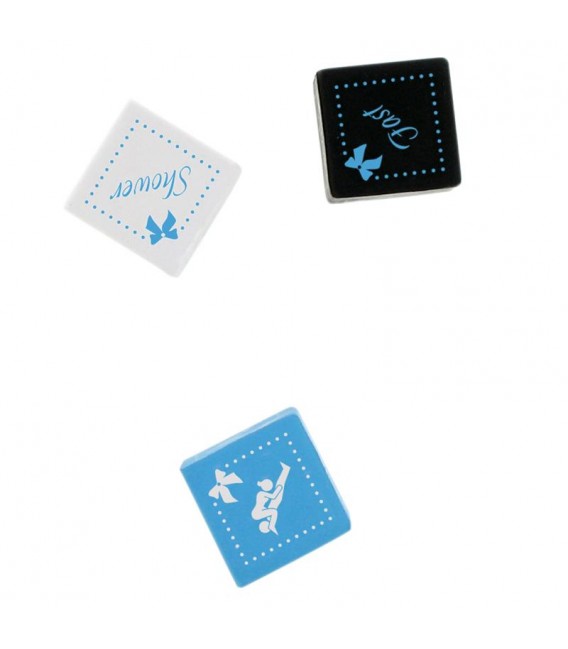 ¡Una aventura juntos en busca del placer ! Lanza los tres dados (azul para la posición de Kamasutra , negro para instrucciones adicionales y blanco para el lugar) y emprende junto a tu pareja un viaje lleno de pasión.