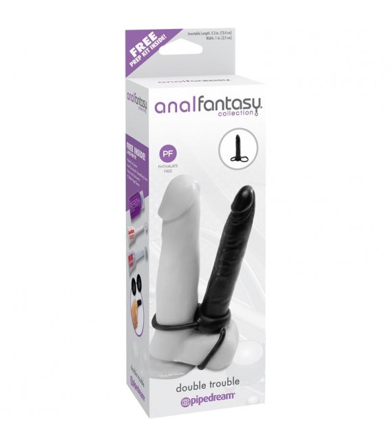 Si nunca has probado el juego anal, a continuación, el Double Trouble es justo lo que necesita para explorar el maravilloso mundo de la estimulación anal. Este cinturón te permite disfrutar de la emoción de la doble penetración sin la participación de otro compañero. El anillo de la parte superior del eje actúa como un anillo para el pene para mejorar el rendimiento, mientras que el anillo inferior más grande se enrolla alrededor de tus testículos para un apretón. El dildo cuenta con una punta cónica para facilitar la entrada. Además es lo suficientemente firme como para que no se doble durante la penetración.
