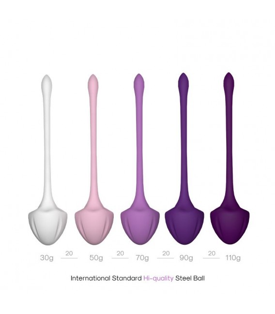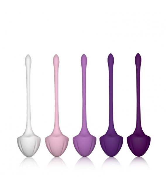 Set de 5 bolas kegel pensadas e ideadas para fortalecer tu suelo pélvico. Cuentan con materiales extra resistentes y flexibles, y cada una de ellas cuenta con un color y un peso para que vayas aumentando de grado según tus necesidades.