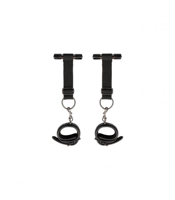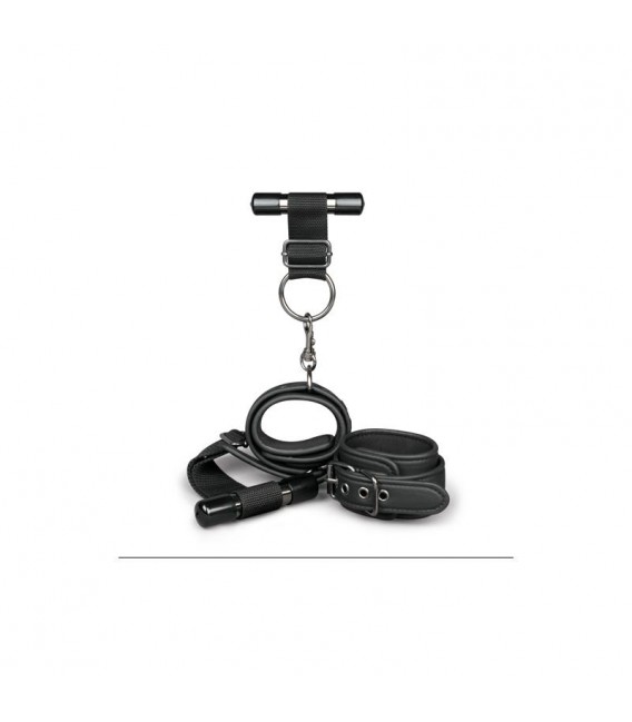 Si eres nuevo en el mundo del bondage, estas esposas son perfectas para comenzar la aventura. Todo lo que tienes que hacer es posicionar la barra de metal en la parte superior de una puerta y cerrarla. Ata a tu pareja donde quiera que vayáis (siempre que la puerta pueda soportar el peso). Son perfectas para usar en casa o en tus vacaciones. Las esposas son ajustables y están fabricadas de cuero de imitación con espuma en el interior.