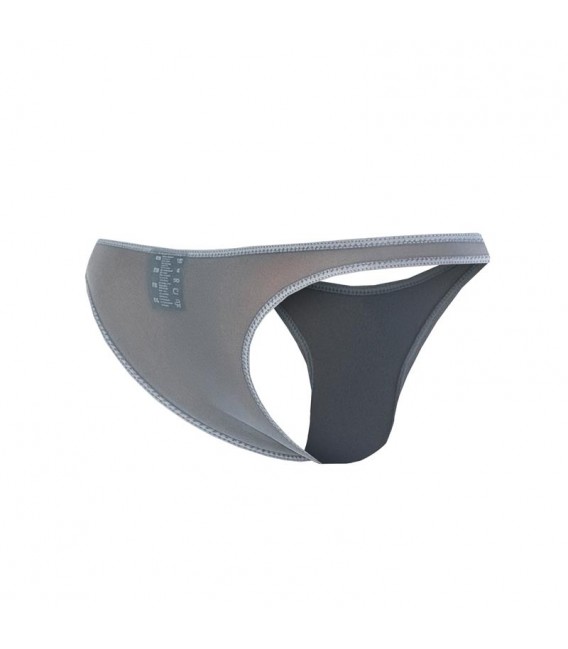 Fabricado con un tejido técnico de alta calidad compuesto por 80 % poliamida y 20 % elastano (Spandex), este slip es resistente al agua y al cloro, y se seca rápidamente. Se puede usar como ropa interior o como traje de baño.