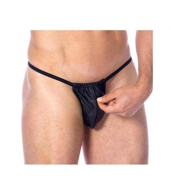Tanga de cuero masculino con elástico para una mayor comodidad y ajuste.