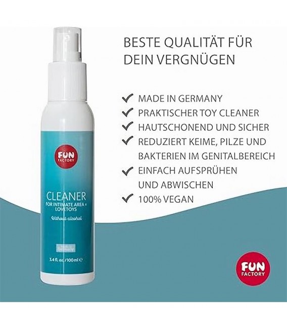 Formulado especialmente para ser seguro y suave tanto con los juguetes como con la piel, el Fun Factory Cleaner es una alternativa fantástica y amigable con el cuerpo frente a los jabones de uso doméstico.