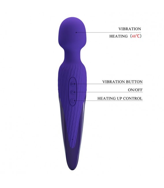 Este masajeador es súper potente y te promete una experiencia erótica intensamente poderosa. Cuenta con 7 funciones de vibración y 5 velocidades para que elijas, además de una función que puede calentarlo hasta 48 ?, brindándote una experiencia realista. Fabricada con silicona médica de textura suave, tiene tres sencillos botones de control que activan la cabeza vibradora, cubierta con una lujosa copa. Es ideal para la estimulación íntima más intensa que jamás hayas experimentado.