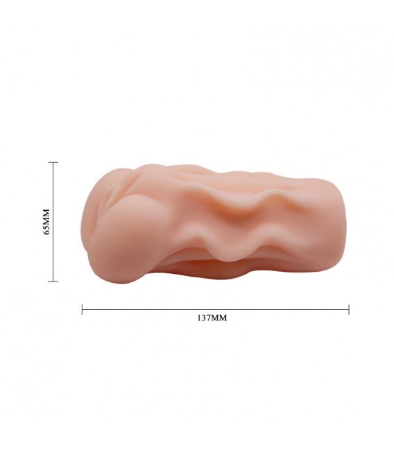 Masturbador realista de vagina con un túnel con texturas nubosas y acanaladas, diseñado para ofrecer una experiencia intensa y placentera, que simula la sensación de la piel real con cada uso. Ideal para quienes buscan una estimulación profunda y un ajuste perfecto.