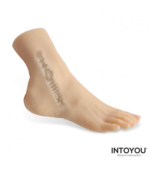 Fabricado en silicona, ofrece un tacto suave y agradable que imita la piel. Su diseño detallado reproduce la forma de un pie con gran realismo, facilitando además una sujeción cómoda durante el uso.