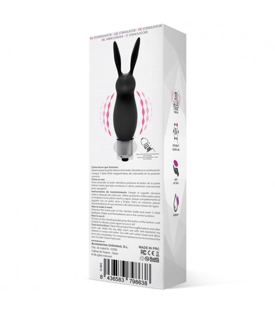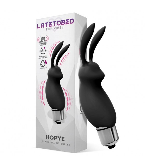Esta bala vibradora cuenta con una funda de silicona con una forma muy peculiar. Con unas orejitas de conejo, Hopye es especialista en acariciar y estimular todas tus partes erógenas a la perfección. Fabricada con silicona de alta calidad suave y sedosa es perfecta para la masturbación, para una erótica estimulación o para añadir más sensaciones a tus relaciones, nunca está demás añadir a un amigo extra.