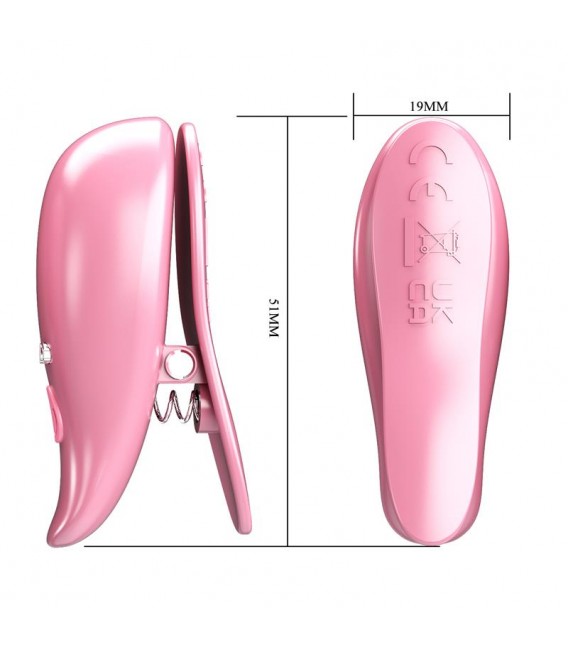 Date el gusto con estas divertidas pinzas para pezones con vibración. Estas pinzas ofrecen un emocionante y placentero pellizco directamente en tus pezones, y sus 10 funciones de vibración proporcionan una estimulación extra. El acabado satinado es suave al tacto y resistente al agua, lo que facilita la limpieza una vez que termines, o puedes disfrutar de otra ronda de diversión en la ducha o la bañera.