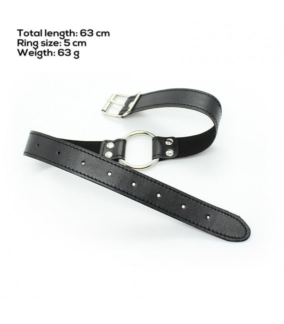 Mordaza con un anillo de metal en forma de O, ideal para que puedas usar la lengua para cosas más importantes. Es totalmente ajustable gracias a su hebilla en la parte trasera.