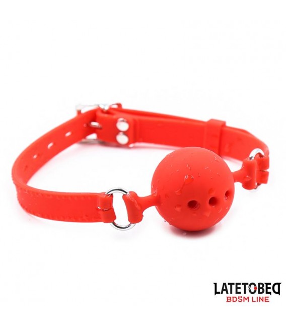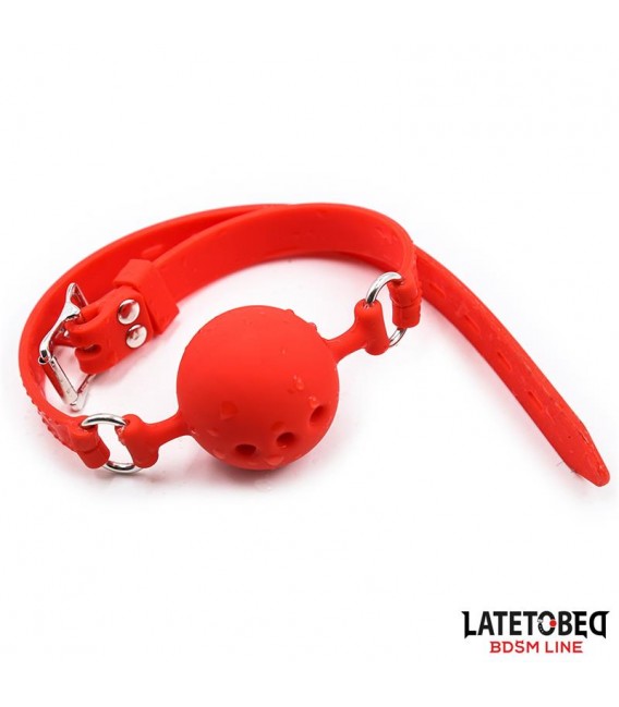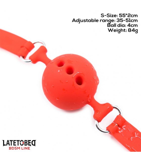 Mordaza de bola transpirable de tamaño pequeño. Es totalmente ajustable gracias a su hebilla en la parte trasera.