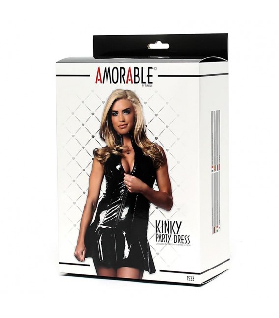 ¿Quieres ser el centro de atención? Con este vestido de látex seguro que lo consigues. Cuenta con un material brillante, con una falta con vuelo y con una cremallera que recorre toda la parte delantera, para darle ese toque sensual.