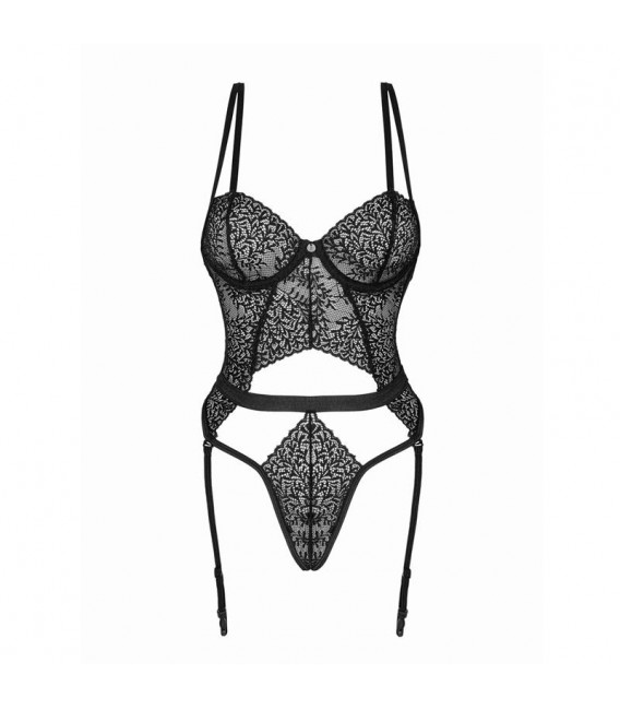 Bodysuit de encaje con el liguero incorporado. Cuenta con una espalda abierta y una parte inferior en forma de tanga.