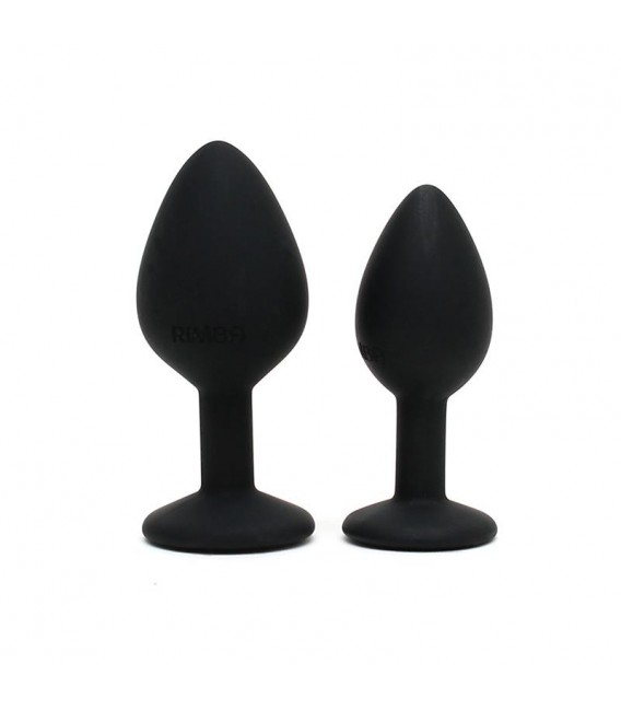 Set de 2 plugs anales de diferentes tamaños con joya en la base. Este plug es muy cómodo de usar y garantiza el placer para ella o para él.