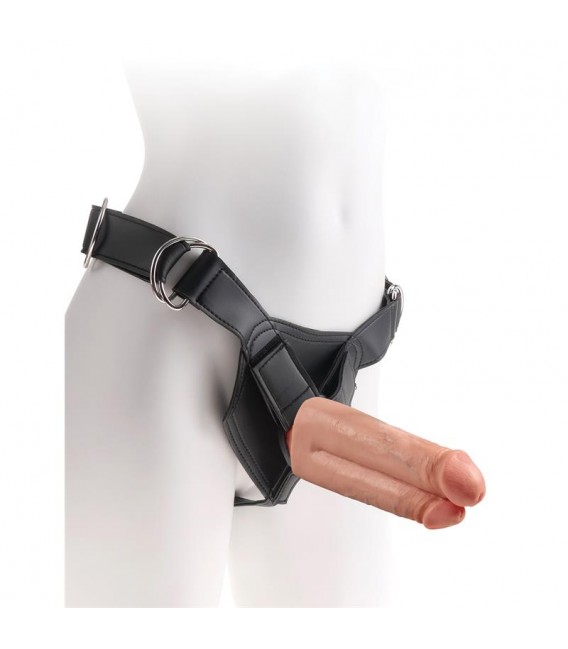 Si quieres un arnés que llene de fantasías tus noches, este arnés con dos dildos realistas te satisfará por completo. Fabricado a mano es flexible y cuenta con una fuerte ventosa que lo ajusta perfectamente al arnés y que te permite además poder usar el dildo sin necesidad del arnés. Está totalmente libre de ftalatos y de látex, es hipoalergénico y seguro para el cuerpo.