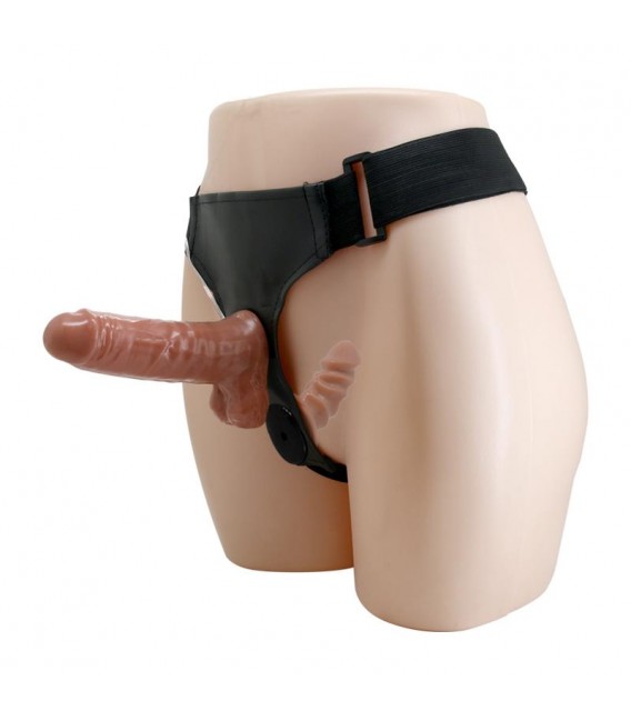 Arnés con dildo doble, cuentan con materiales suaves y realistas, perfectos para una penetración suave y satisfactoria. Gracias al dildo doble podrás disfrutar como nunca con cada empuje. El arnés es ajustable y elástico y el dildo cuenta con vibración y un control remoto con cable que podrás anclar al arnés.