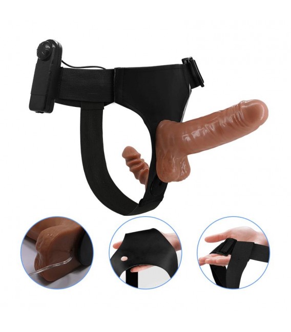 Arnés con Dildo Doble Retractil con Vibración