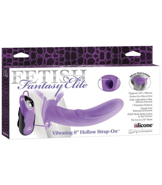 Arnés con Dildo Hueco con Vibración 20 cm Púrpura