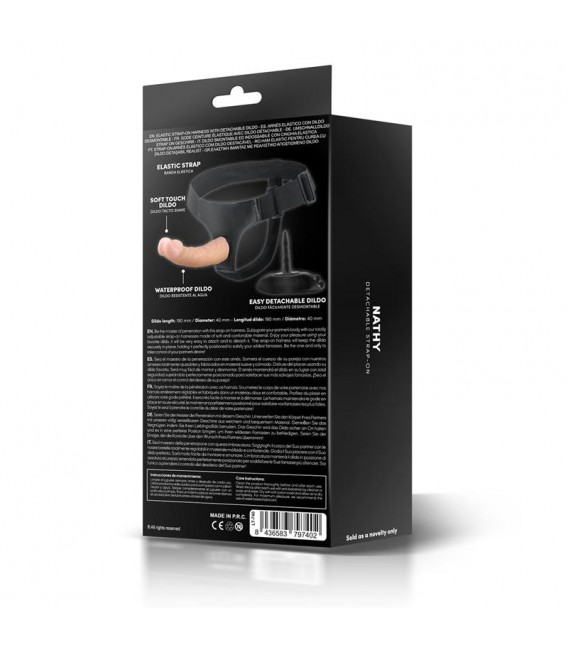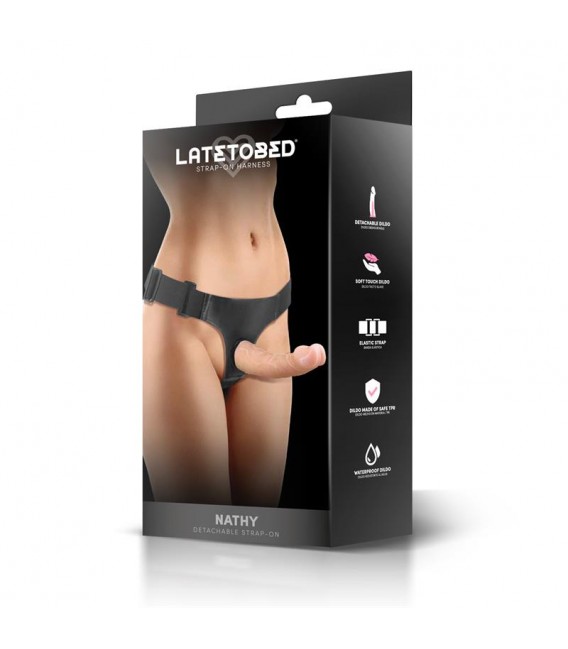 Nathy es un arnés que incluye un dildo con un tacto sedoso. Este dildo es semi realista, con el añadido de unas venas marcadas para añadir placer, y cuenta con un tacto sedoso e increíble al tacto.