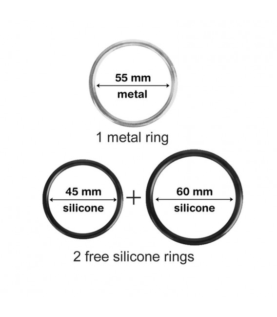 - 3 anillos incluidos, uno de metal y dos de silicona