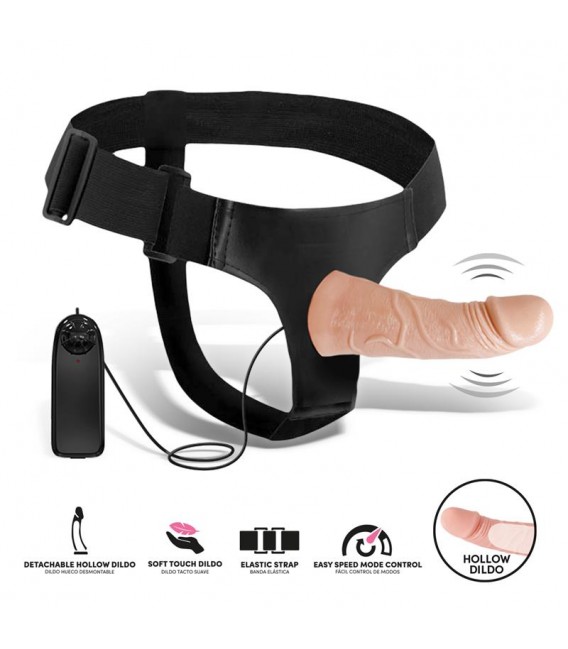 Eleto Arnés con Dildo Hueco Desmontable, Vibración y Control