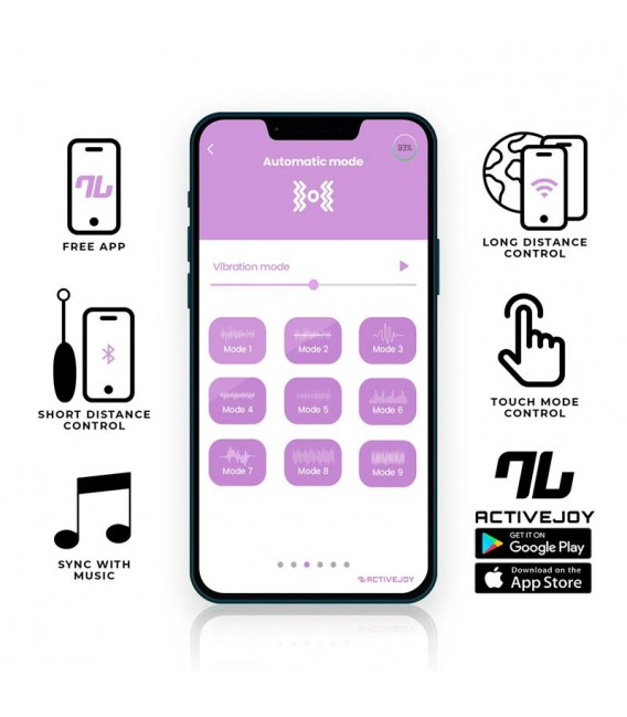 Lo más emocionante es la capacidad de controlar sus numerosas funciones a través de ActiveJoy®, nuestra aplicación gratuita. Esta innovadora App te permite disfrutar de estos juguetes a corta, media y larga distancia, brindándote flexibilidad y emoción.