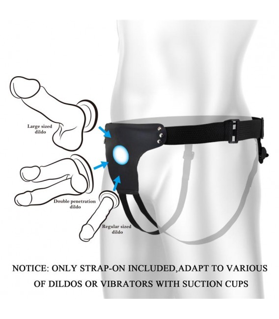 Lleva tu juego al siguiente nivel y disfruta de una sesión con este arnés strap-on. Cuenta con una correa adicional para un ajustarse perfecto de cadera. Se puede combinar con una amplia gama de dildos, vibradores compatibles o fundas para penes, en caso de los hombres.