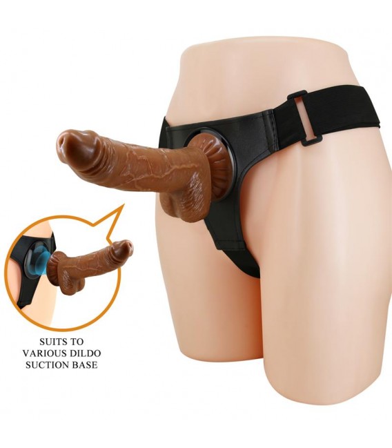 Arnés ajustable con dildo realista. Este arnés es perfecto para principiantes y para los más avanzados gracias a sus materiales elásticos y a su diseño para un ajuste óptimo.